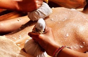 Navarakizhi an Ayurvedic treatment in which poultices filled with cleaned Navara rice is boiled in the mixture of milk and decoction medical concoctions are applied